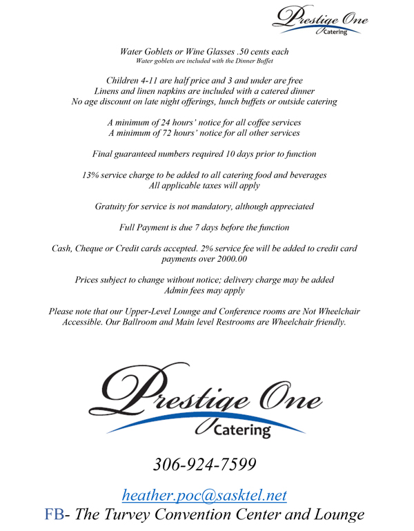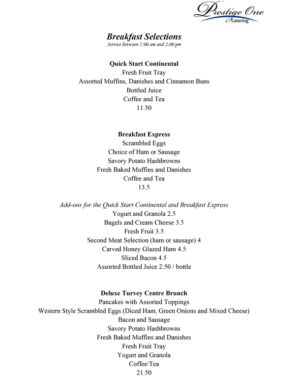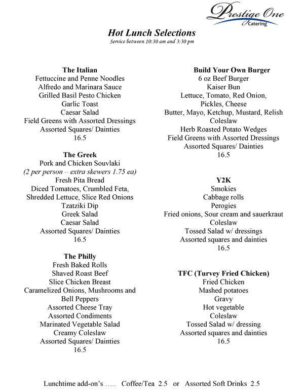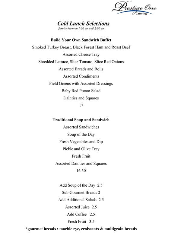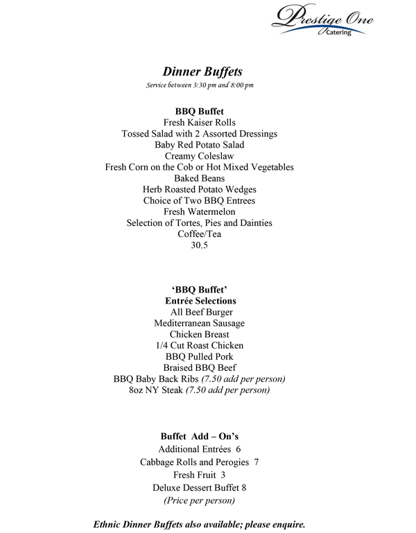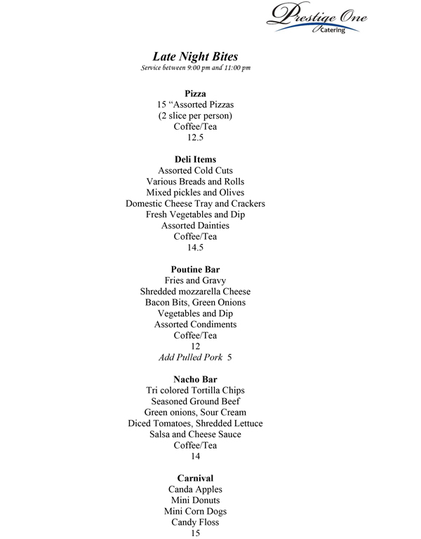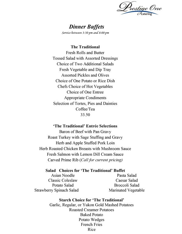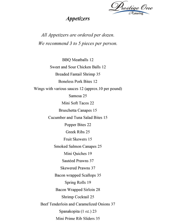 Prestige One Catering Menu